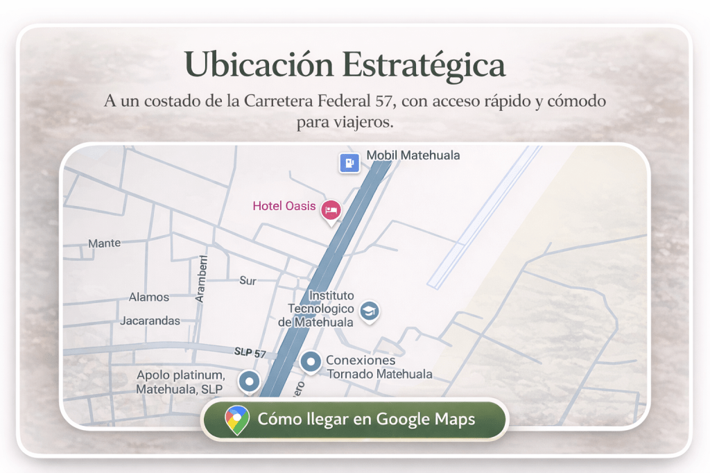 Hotel Oasis & Suites es la opción ideal para viajeros que buscan comodidad, descanso y fácil acceso en su ruta.